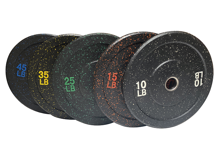 Crumb rubber bumper plates are produced from recycled crumb rubber heated to a high temperature and vulcanized to produce an extremely durable bumper plate that demonstrates a high tensile strength and tear resistance